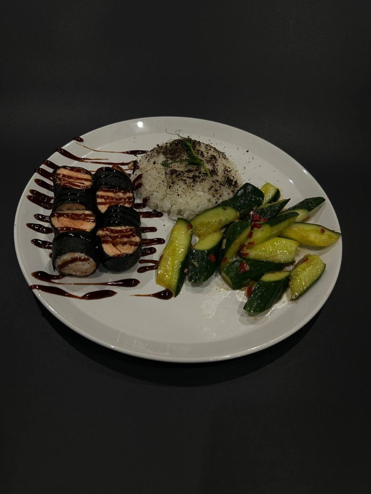Лосось у норі з рисом та битими огірками